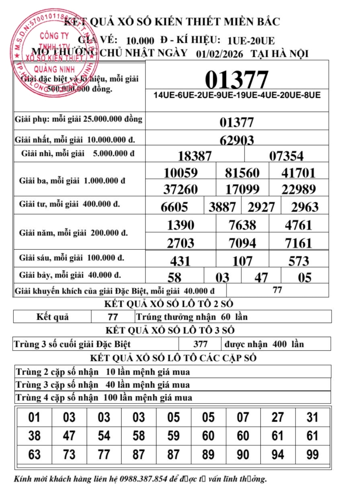 Kết quả ngày 01/02/2026