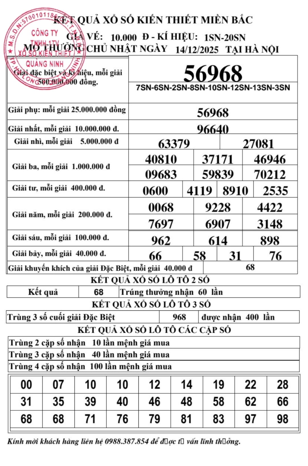 Kết quả ngày 14/12/2025