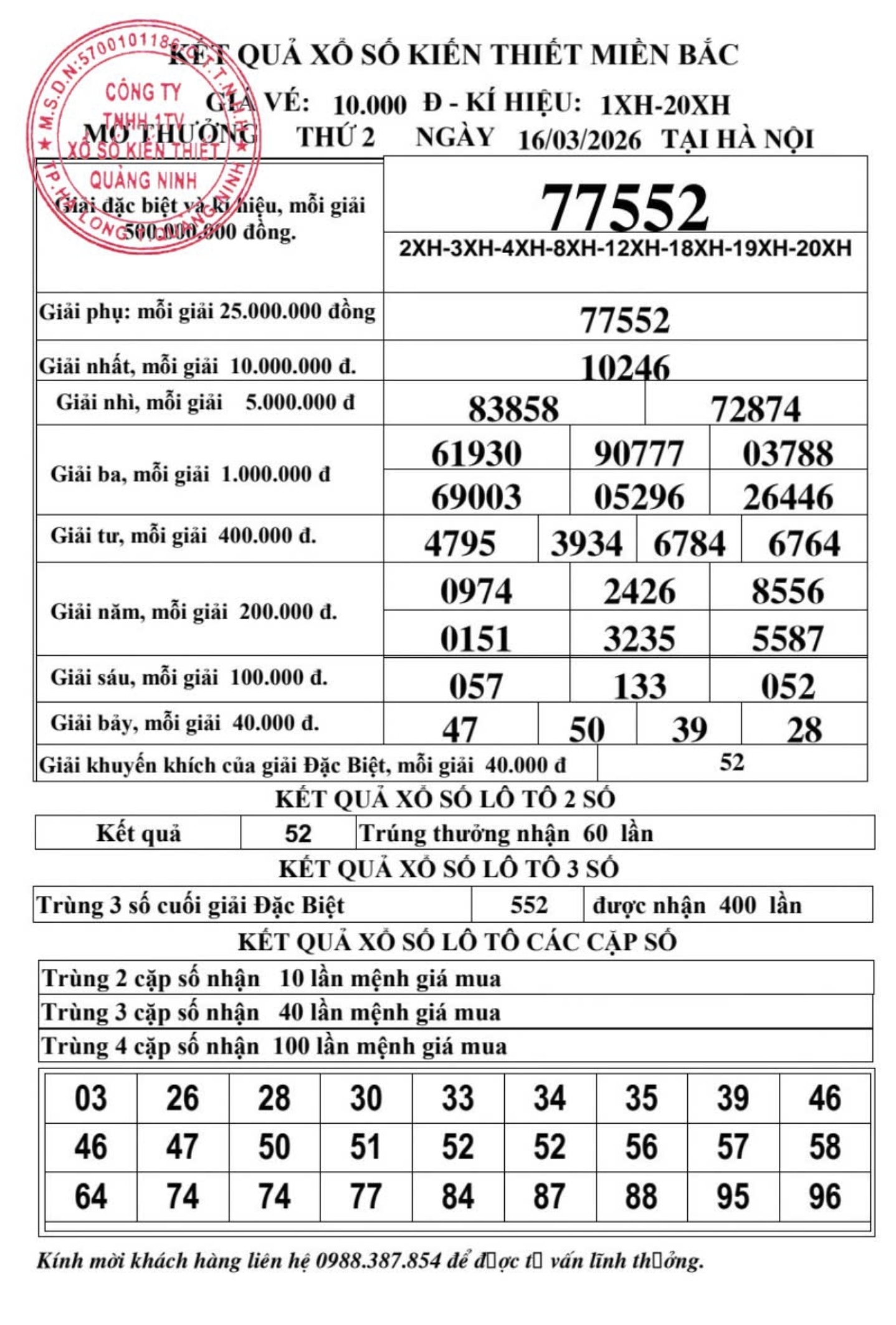 Thông báo về thay đổi cơ cấu giải thưởng loại hình xổ số lô tô thủ công Quảng Ninh từ ngày 05/12/2025