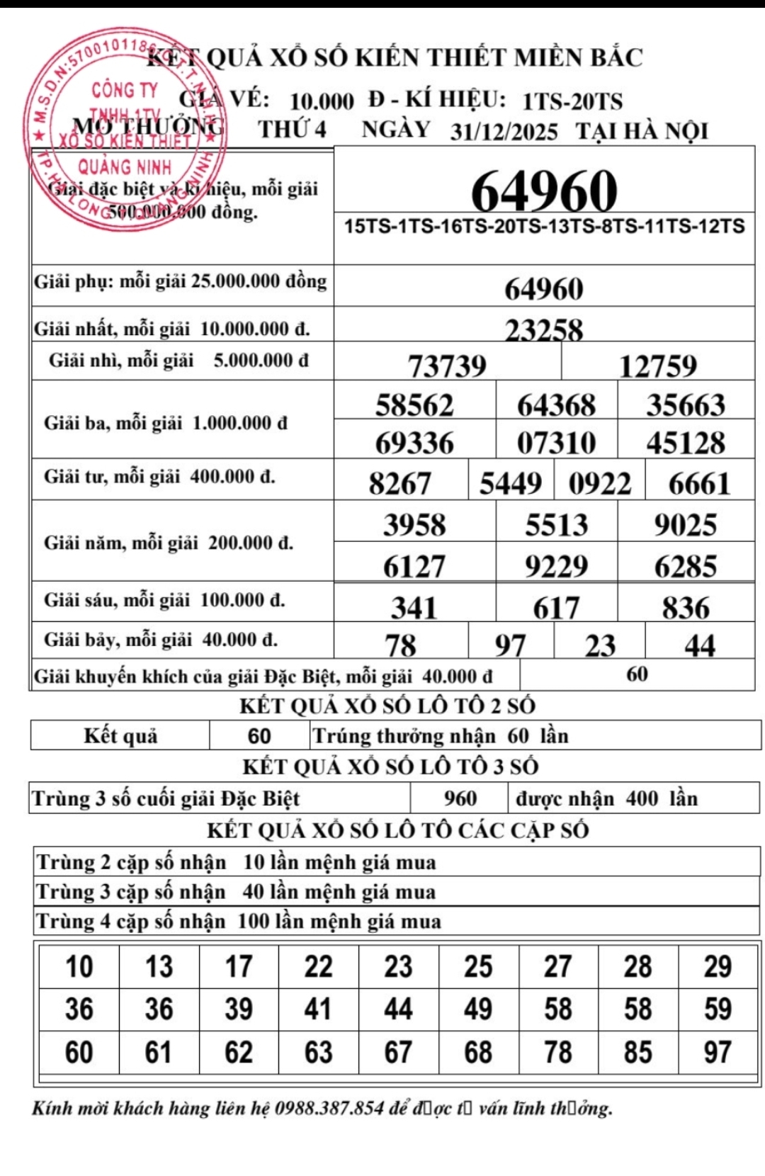 Kết quả ngày 31/12/2025