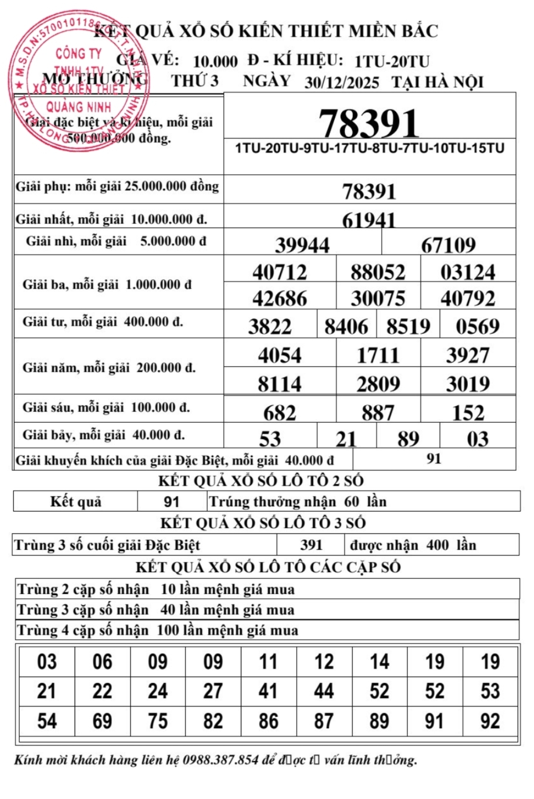 Thông báo về thay đổi cơ cấu giải thưởng loại hình xổ số lô tô thủ công Quảng Ninh từ ngày 05/12/2025