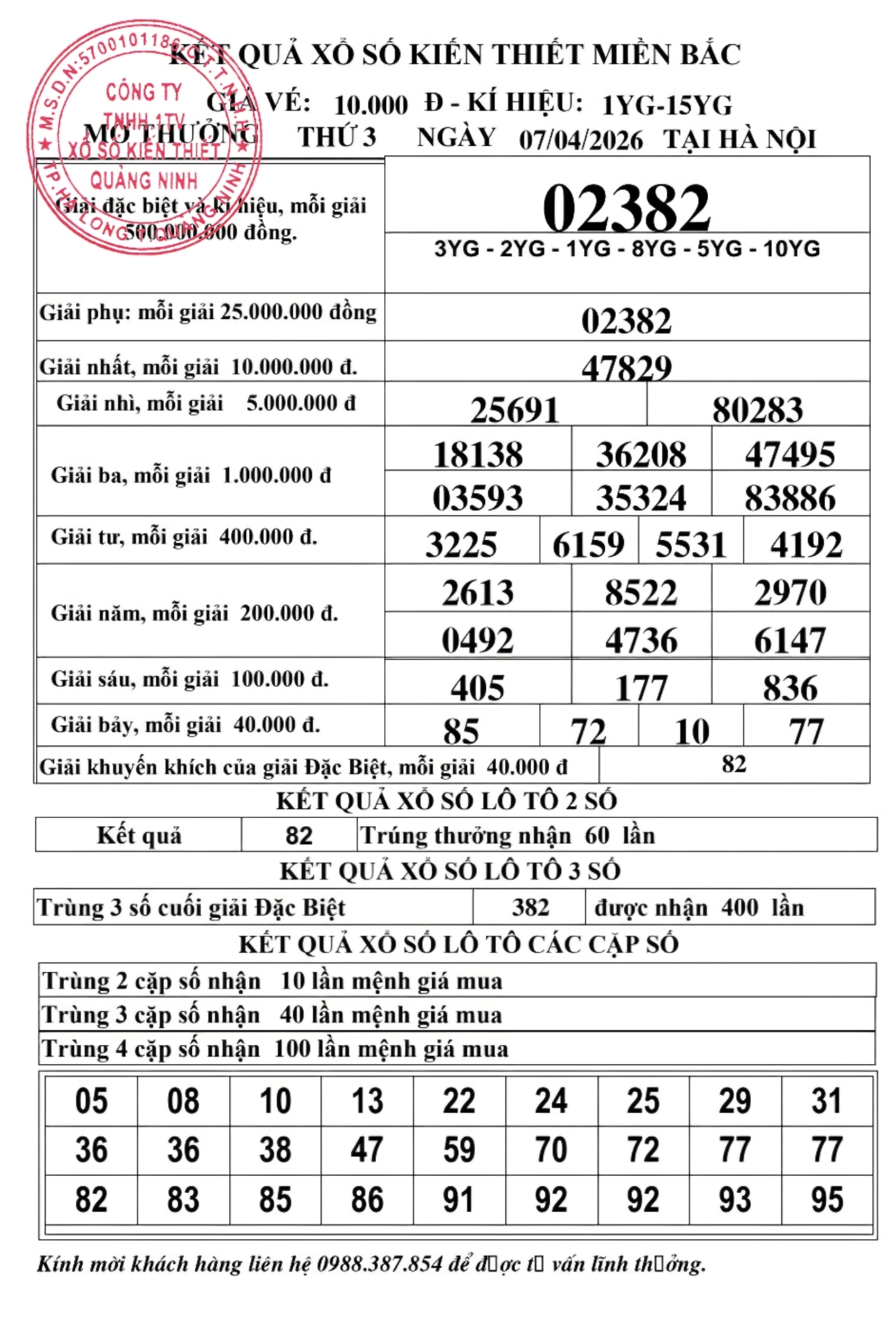 Kết quả ngày 07/04/2026