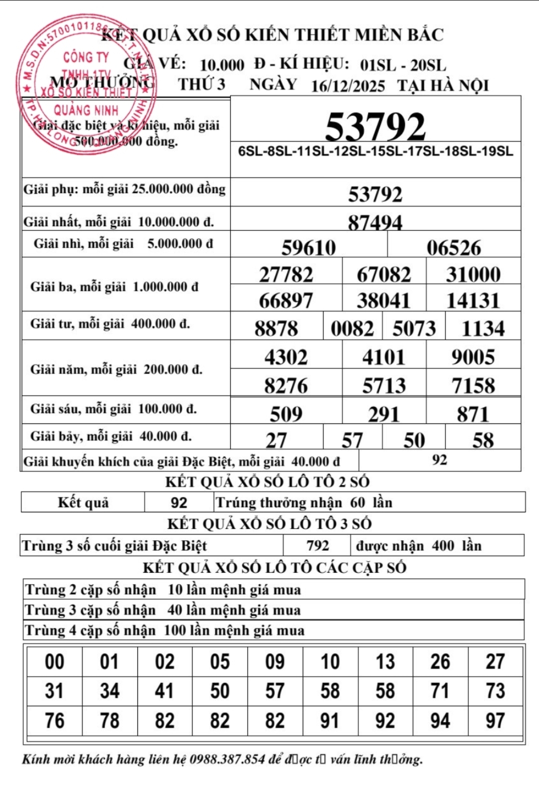 © 2025 Xổ số kiến thiết Quảng Ninh