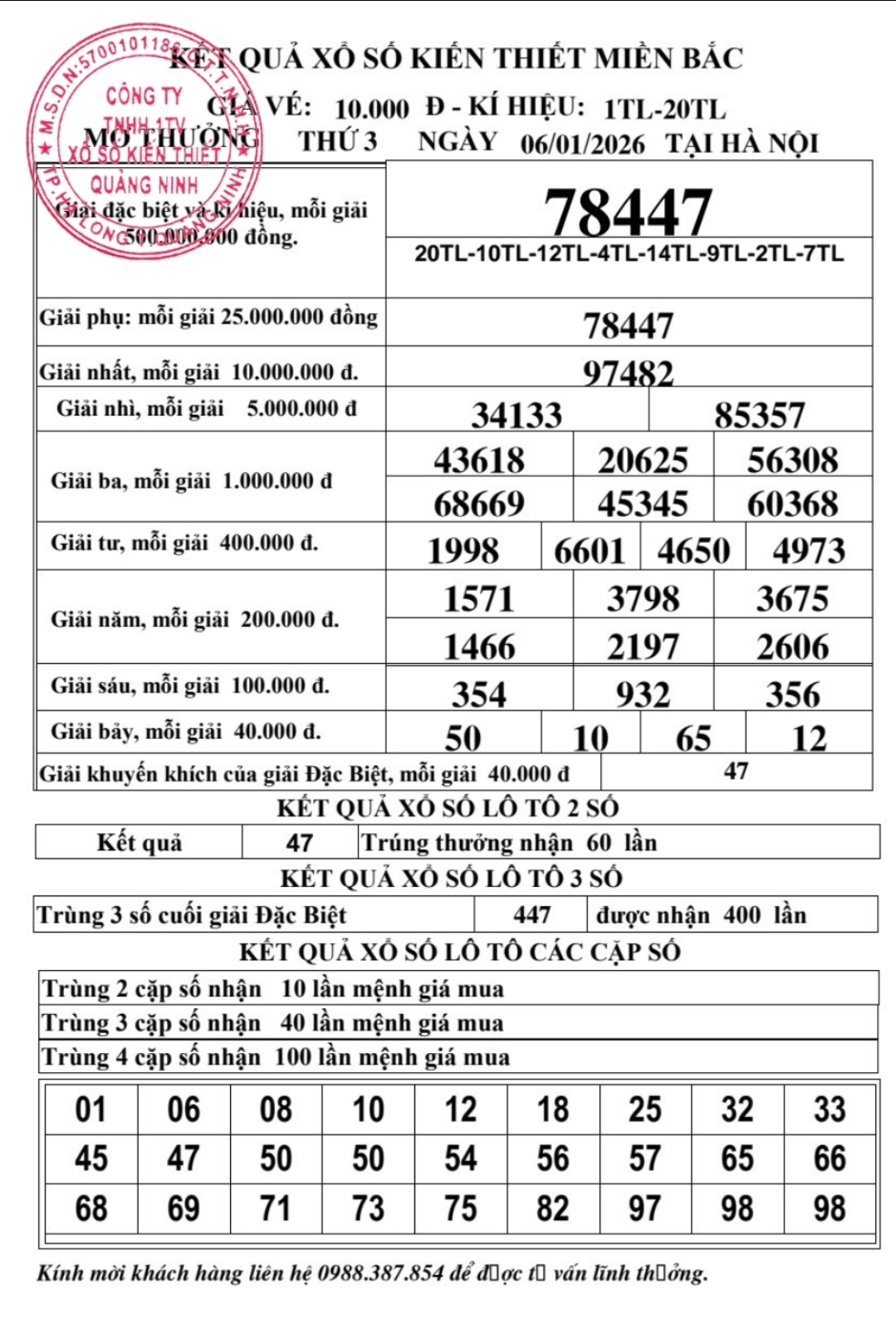 Kết quả ngày 06/01/2026