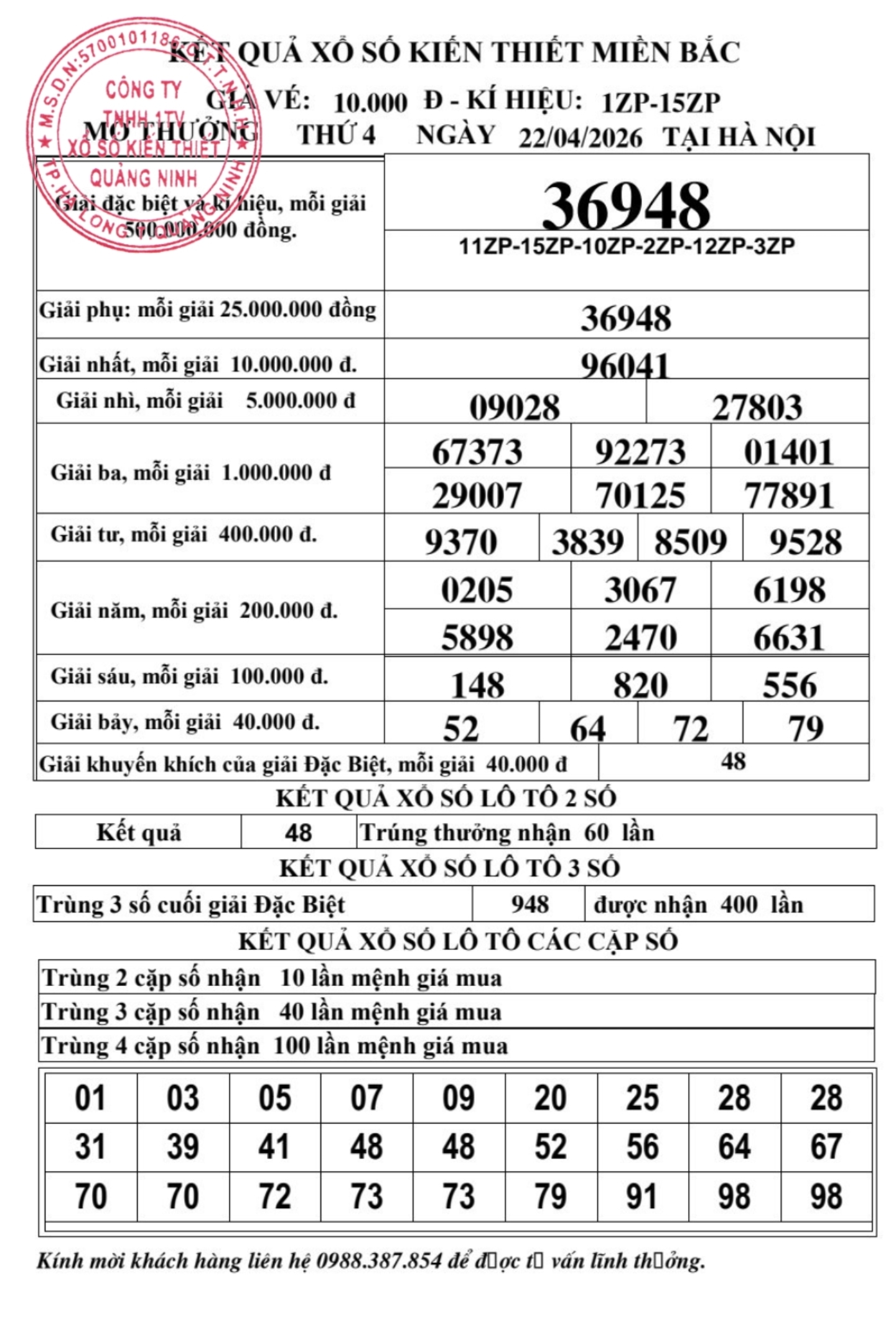 Kết quả ngày 22/04/2026