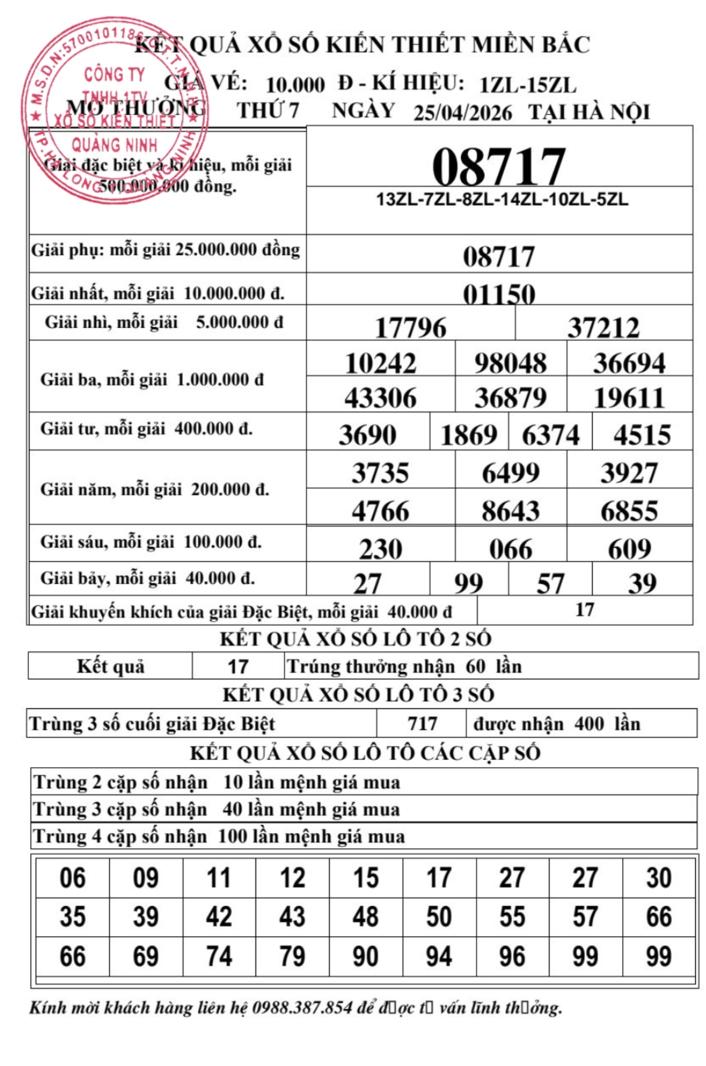 Kết quả ngày 25/04/2026
