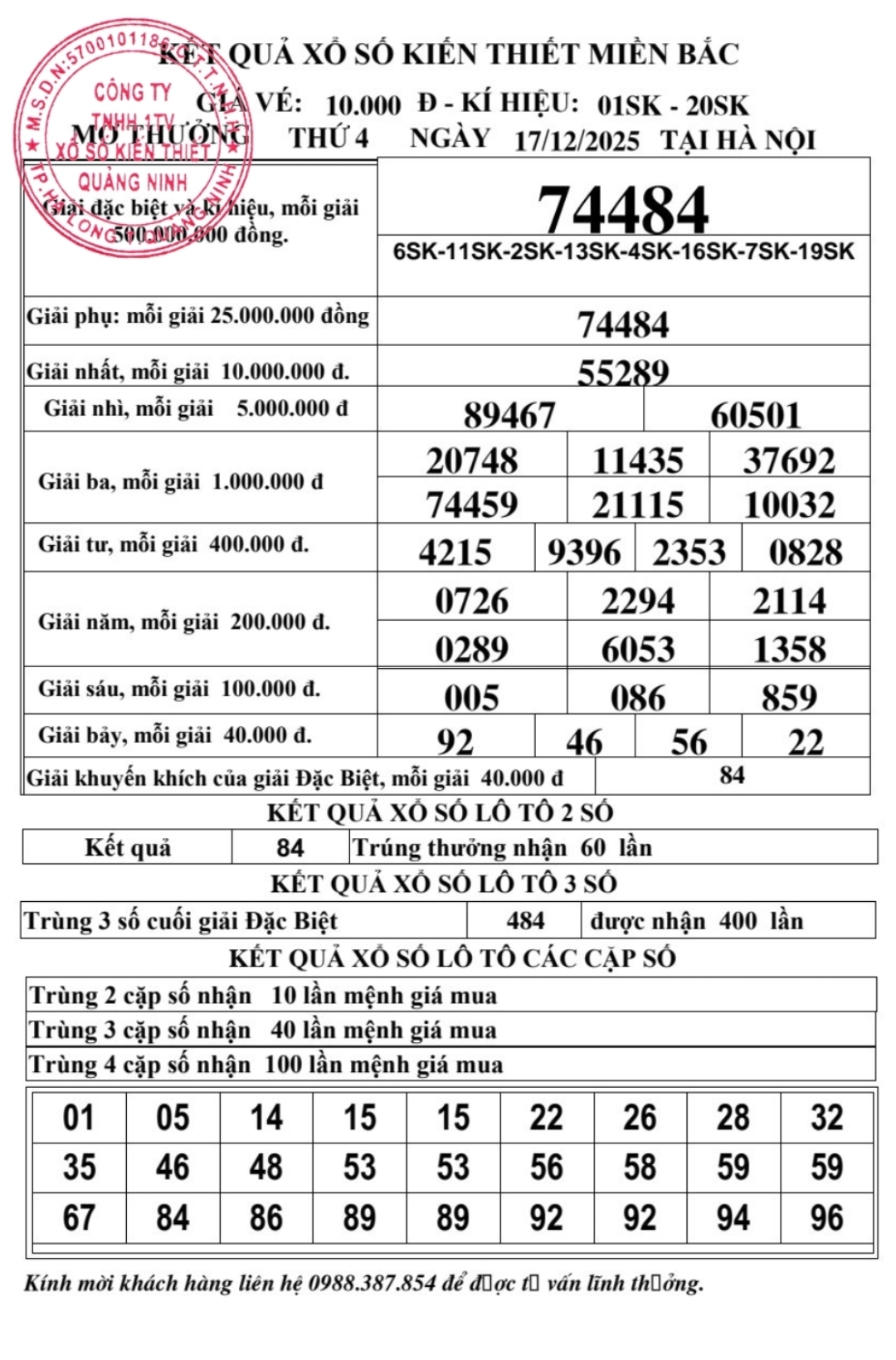 Kết quả ngày 17/12/2025