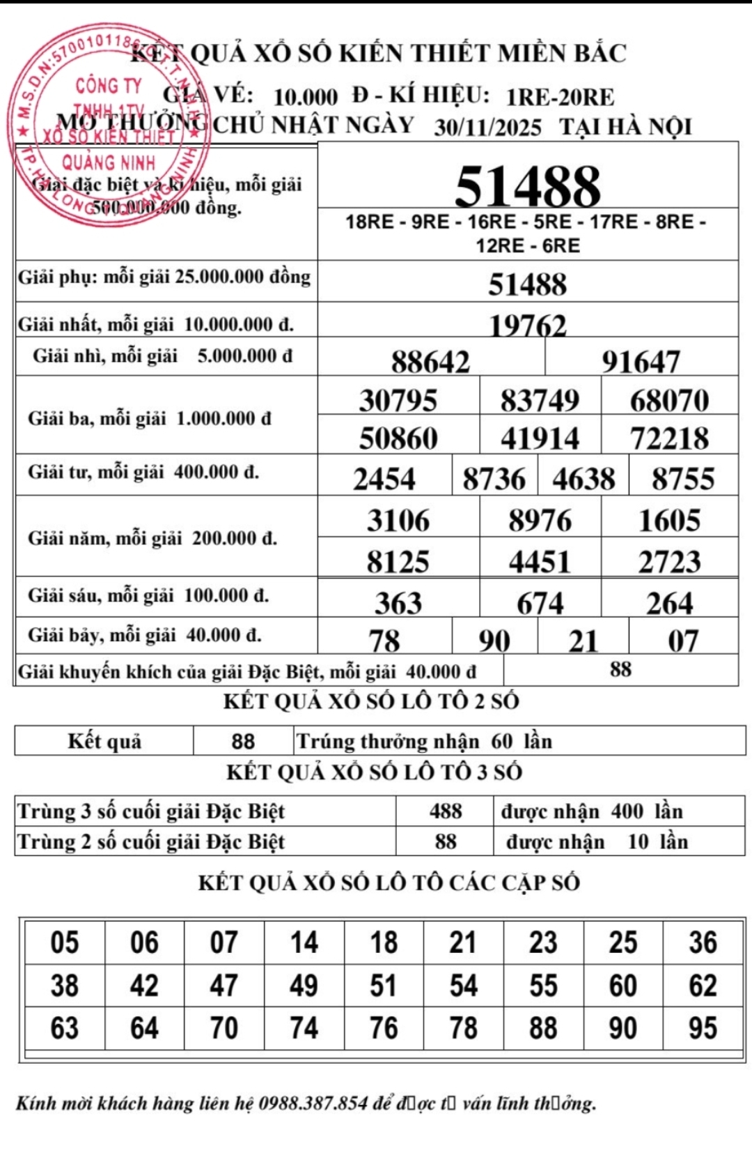 Kết quả ngày 30/11/2025